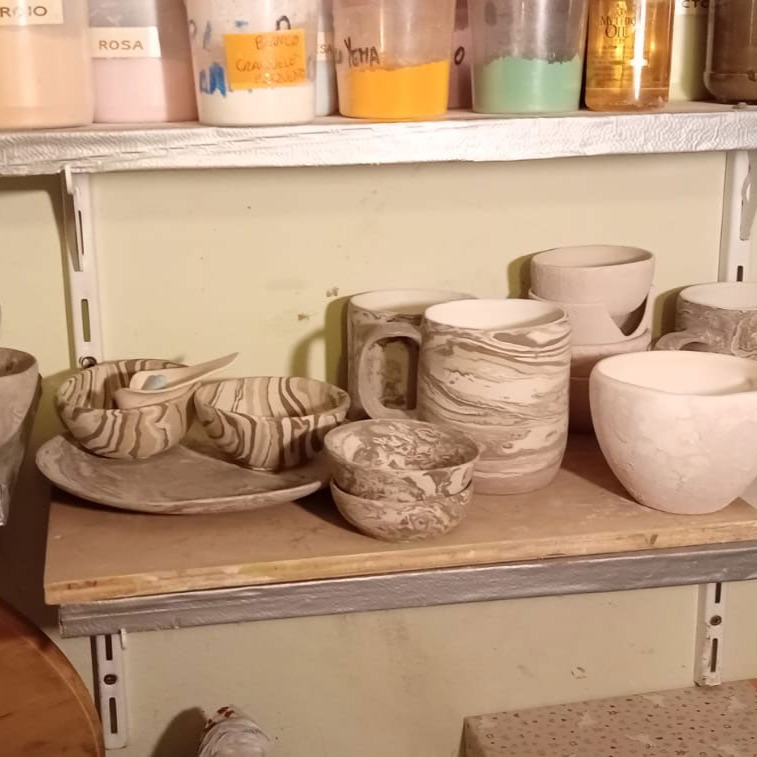 La arcilla moldeada por las manos que la acarician con la intención que llegue a ti su calidez y este en tú presente o que participe de tus recuerdos.
